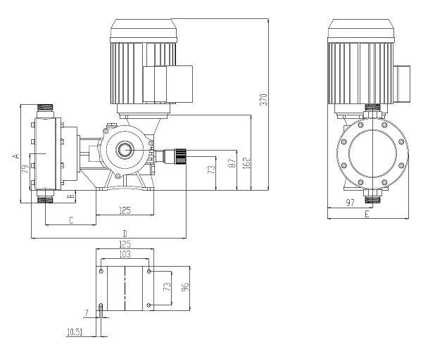 電機(jī)驅(qū)動(dòng)主軸連接的蝸輪蝸桿減速箱形成減速機(jī)械結(jié)構(gòu),軸承在偏心軸上的偏心部分,偏心軸在減速箱輸出軸的帶動(dòng)下旋轉(zhuǎn),軸承在偏心軸的偏心圓上做偏心運(yùn)動(dòng),所產(chǎn)生的偏心距轉(zhuǎn)換成推桿的直線(xiàn)運(yùn)動(dòng),在彈簧回復(fù)力的配合下推桿帶動(dòng)膜片做直線(xiàn)往復(fù)運(yùn)動(dòng),往復(fù)循環(huán)一次叫做沖程,往復(fù)的距離叫做沖程長(zhǎng)度,每分鐘往復(fù)的次數(shù)稱(chēng)為沖程頻率。